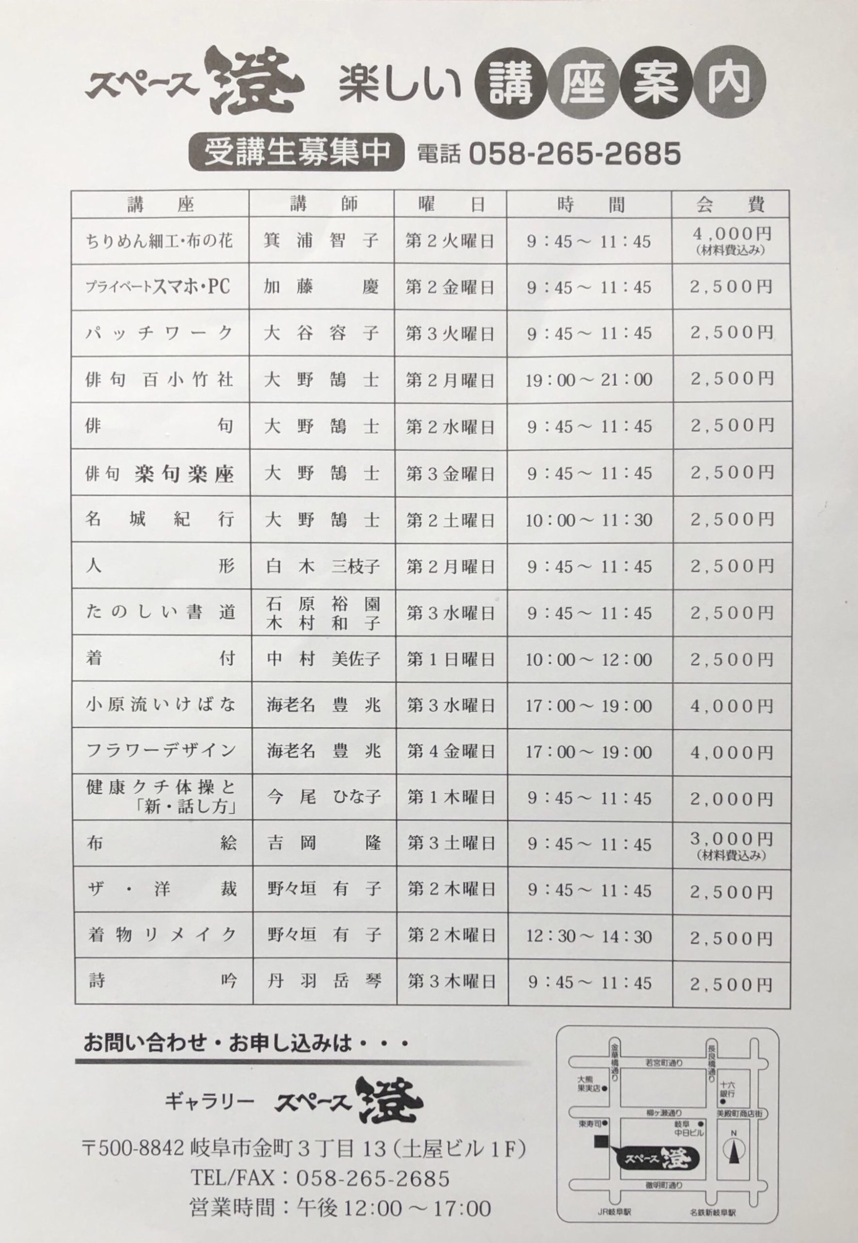 お問い合わせは058-265-2685スペース澄まで。